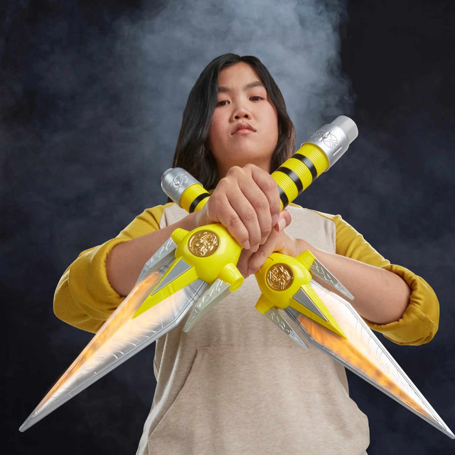 These Mighty Morphin Power Rangers Lightning Collection Premium Roleplay Yellow Ranger Power Daggers have show-inspired design and deco, come with a cool stand for display, and includes awesome electronics that light up the blades and produce sound effects.